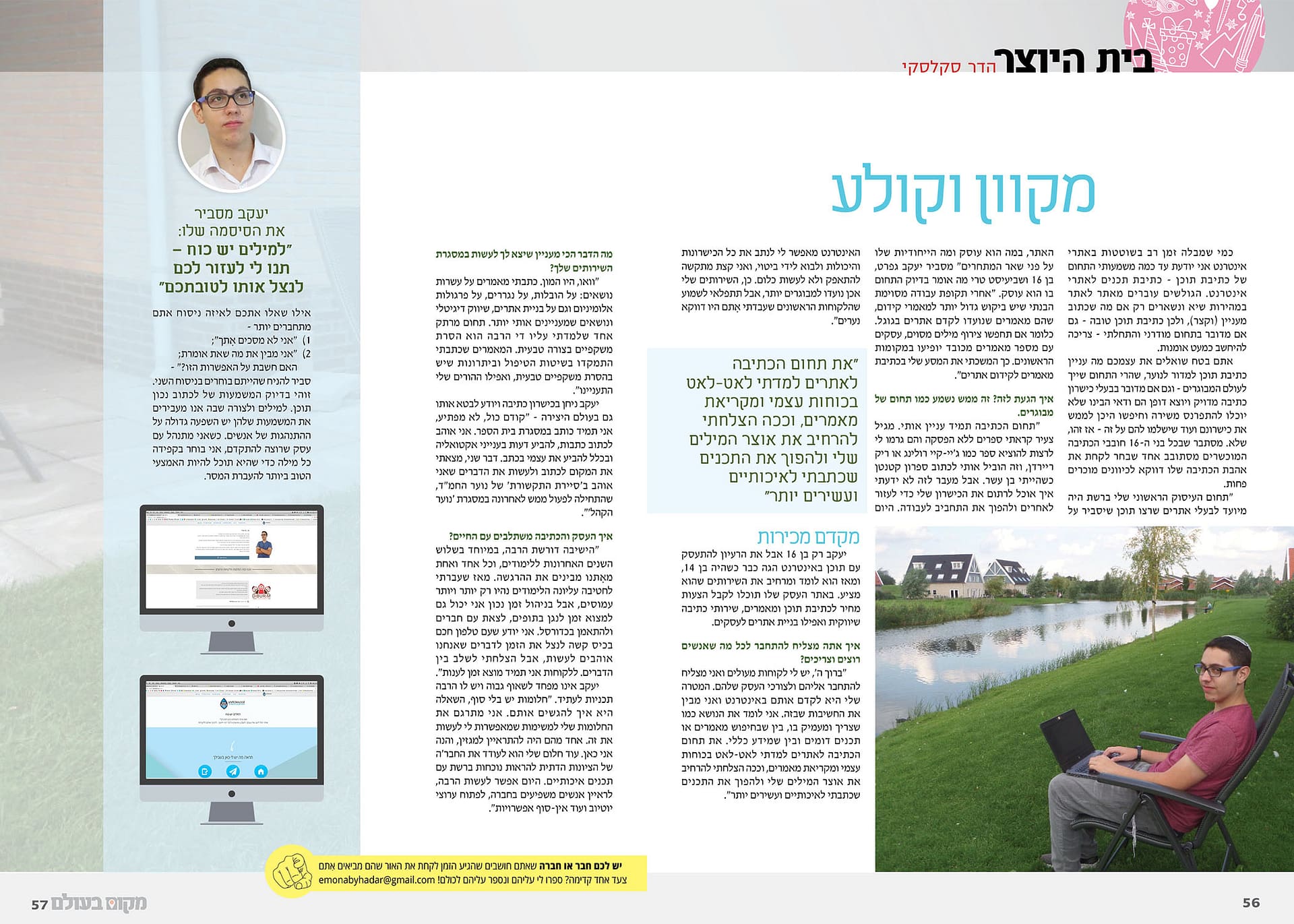 ויעקב לא התאפק לרגע. הוא רק בן 16 ולומד בישיבה תיכונית בכיתה י״א, אבל את הרעיון להתעסק עם תוכן באינטרנט הגה כבר בגיל 14, מאז הוא לומד ומרחיב את השירותים שהוא מציע. באתר העסק שלו תוכלו לקבל הצעות מחיר לכתיבת תוכן ומאמרים, שירותי כתיבה שיווקים ואפילו בניית אתרים לעסקים.